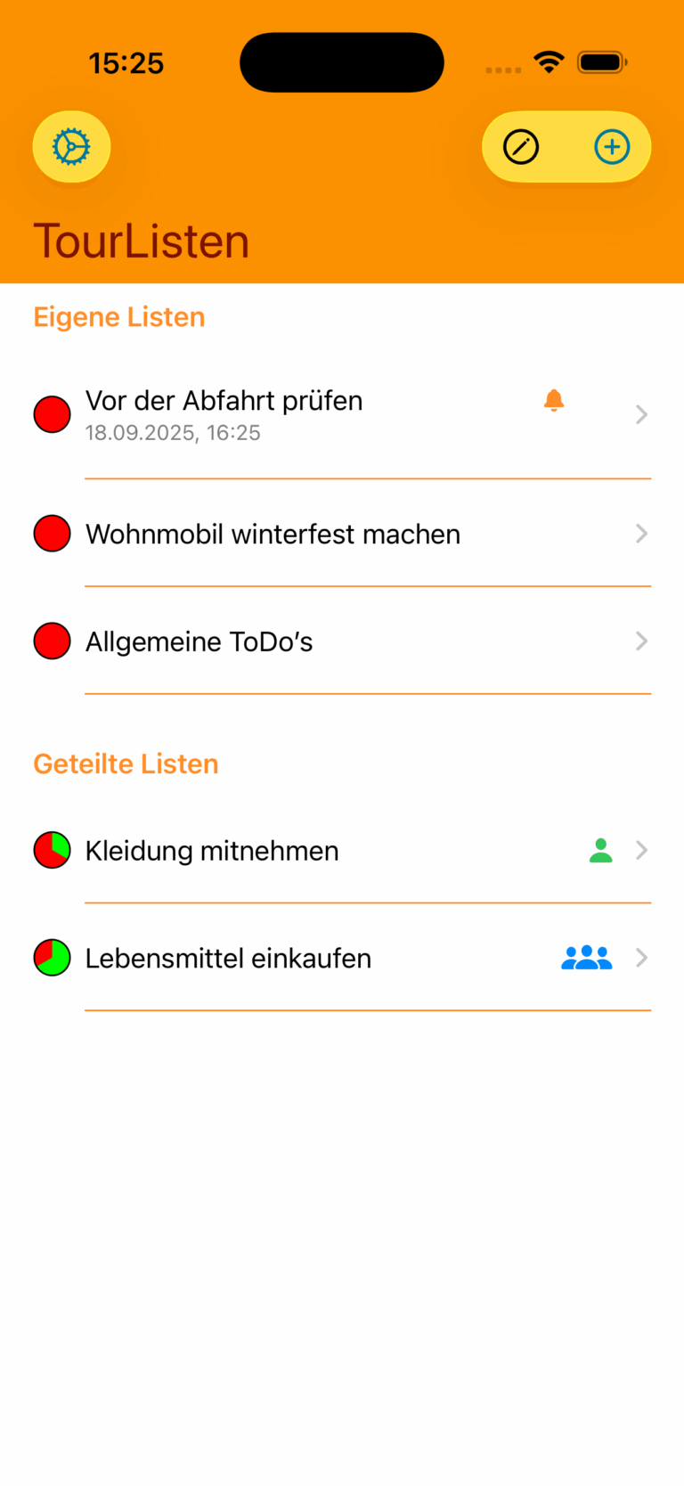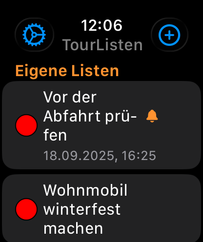Neu ist das Einstellen von Erinnerungen für einzelne Tourchecks oder für ganze Tourlisten möglich. Außerdem werden jetzt eigene Listen und geteilte Listen übersichtlich in einzelnen Bereichen dargestellt.
