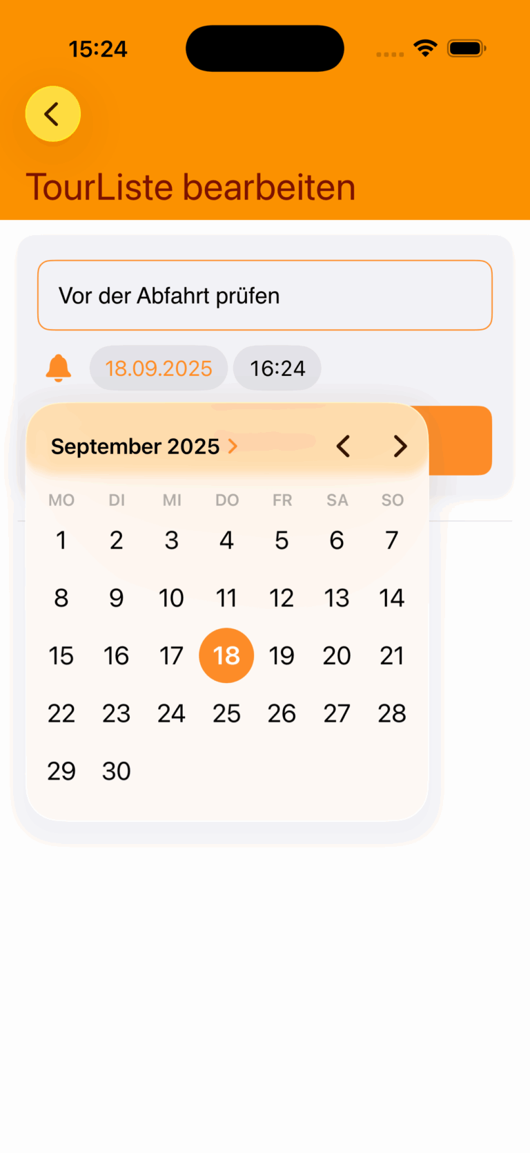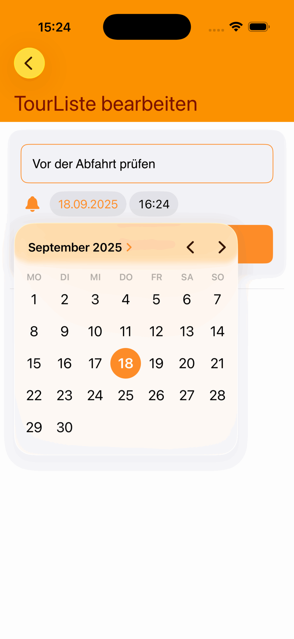 Einfach eigene TourChecks anlegen und vor jeder Abfahrt mit Hilfe von TourCheck überprüfen, ob alle wichtigen Aufgaben erledigt sind um die Tour sicher starten zu können.